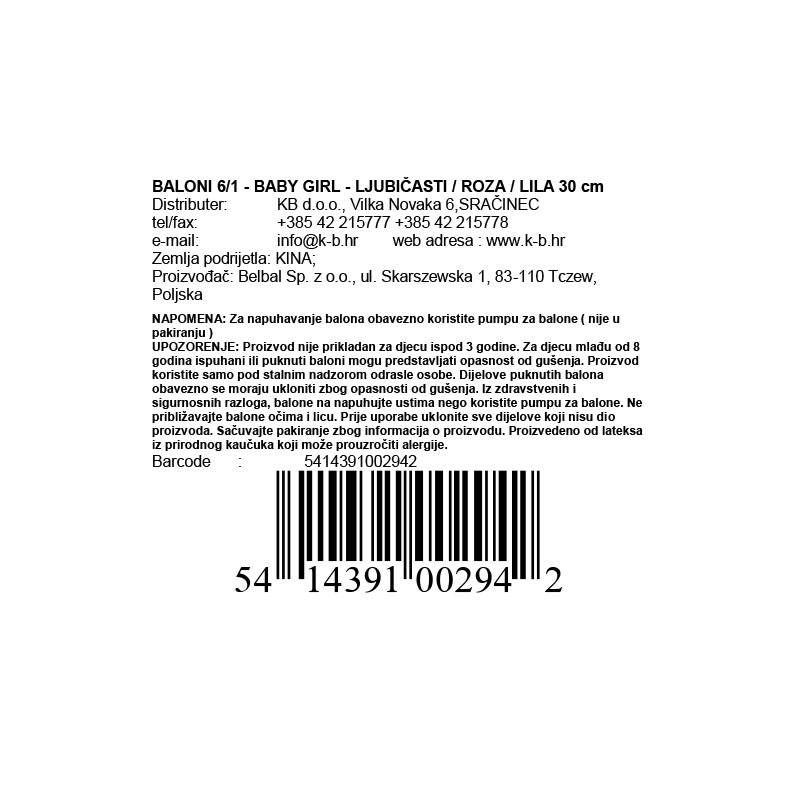 • Pakiranje: 6 balona