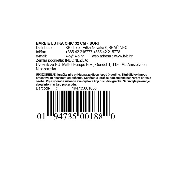 Barbie lutka Chic - SORT je savršena za maštovitu igru i stvaranje raznih modnih kombinacija. Sa svojom šarmantnom odjećom i detaljima, ova lutka će postati omiljena igračka svake djevojčice.