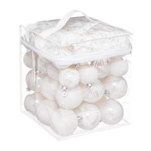 BIJELE KUGLICE ZA BOR 52/1 U TORBI + ZVIJEZDA I GIRLANDA 900 CM