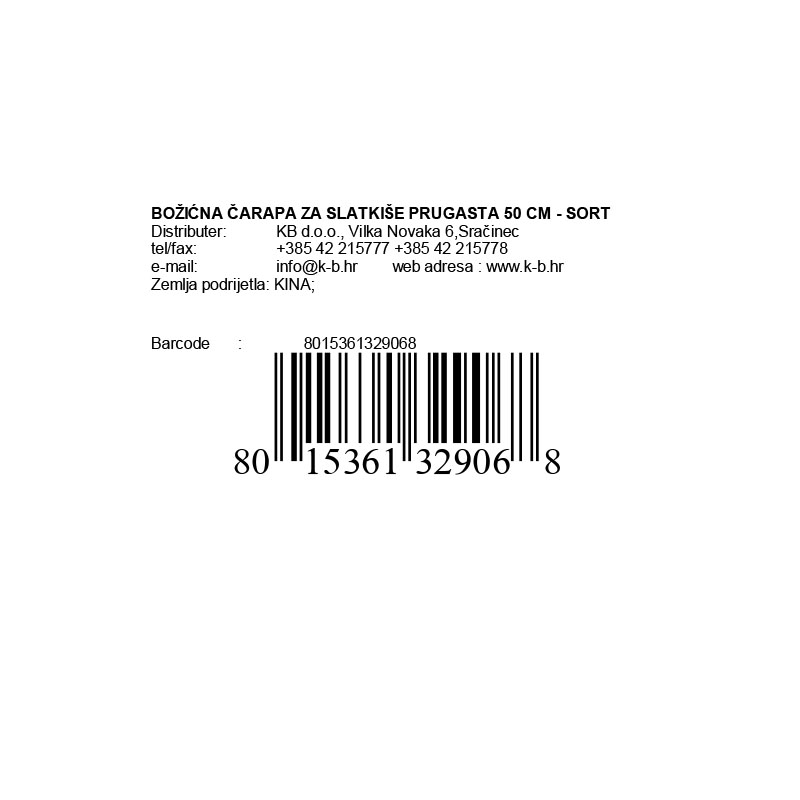 BOŽIĆNA ČARAPA ZA SLATKIŠE PRUGASTA 50 CM