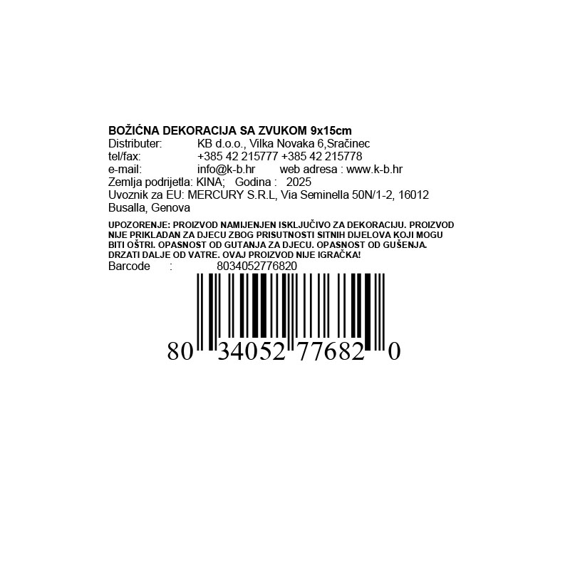 BOŽIĆNA DEKORACIJA SA ZVUKOM NA NAVIJANJE 9x15cm