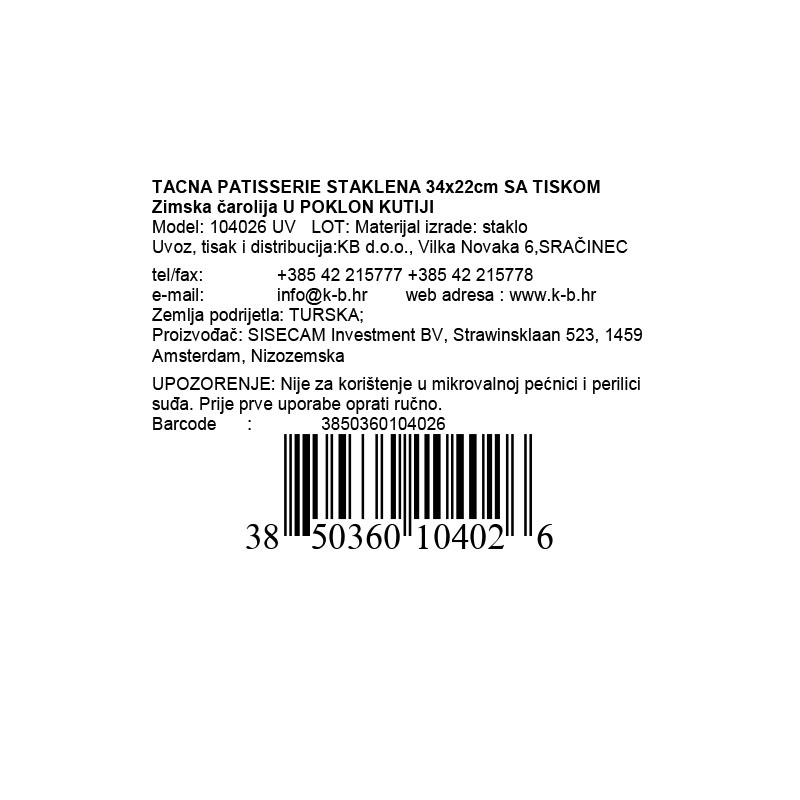 BOŽIĆNA TACNA PATISSERIE STAKLENA 34x22cm SA TISKOM Zimska čarolija