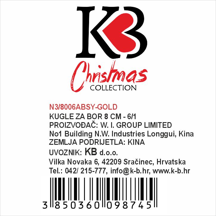 KUGLE ZA BOR 8 CM 6/1 ZLATNE - SJAJ, GLITER, MAT S DEKOROM