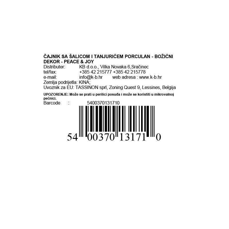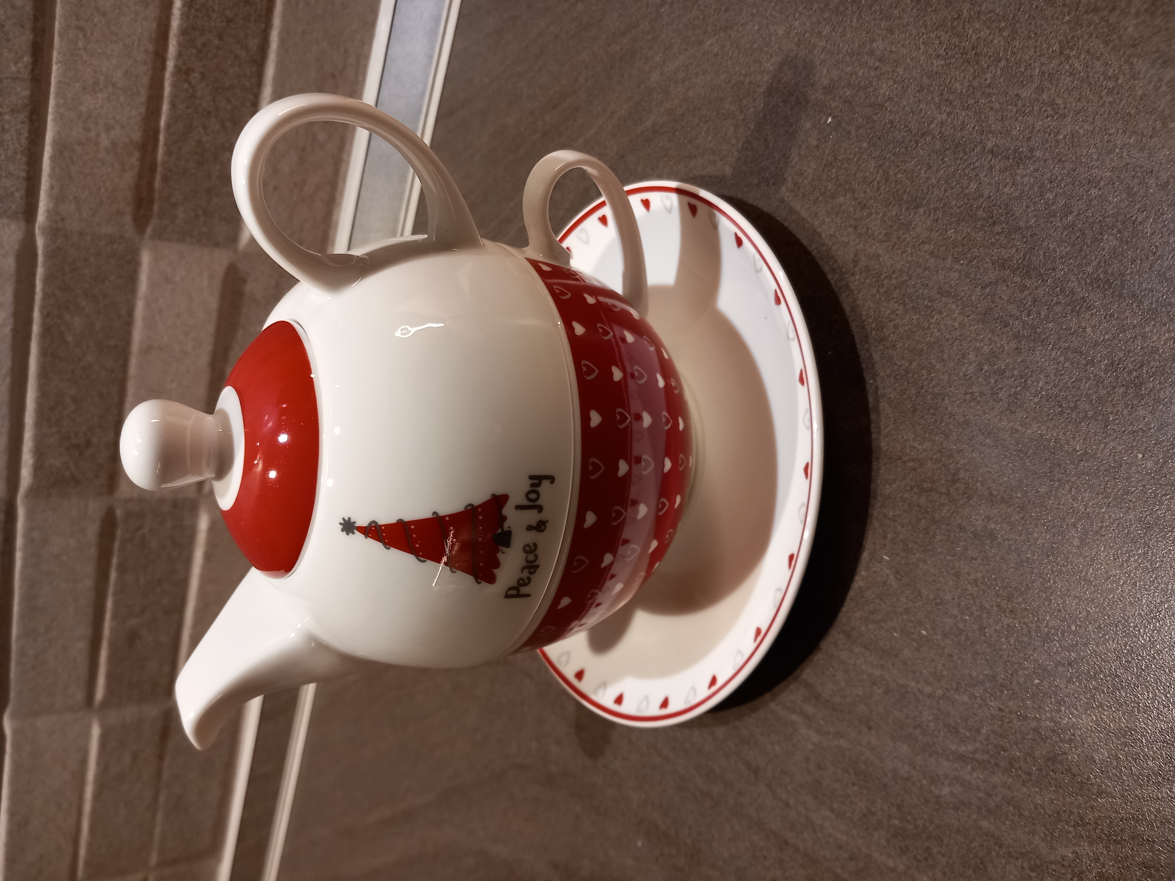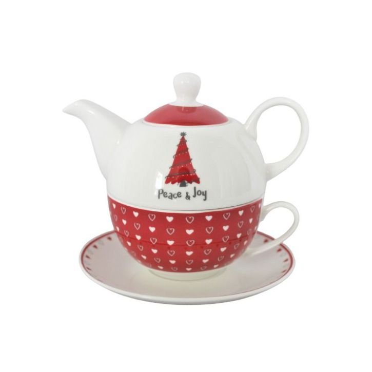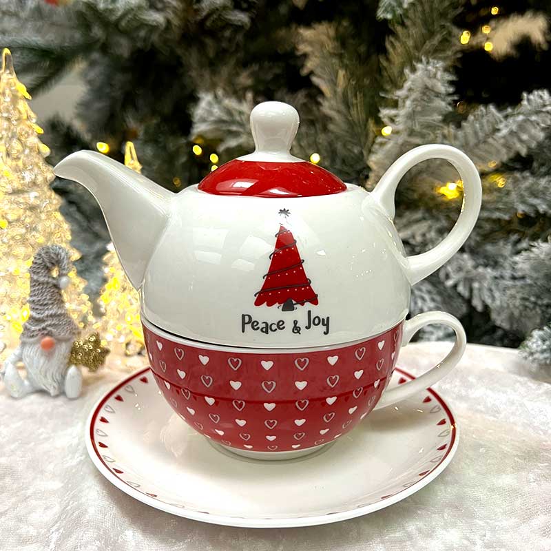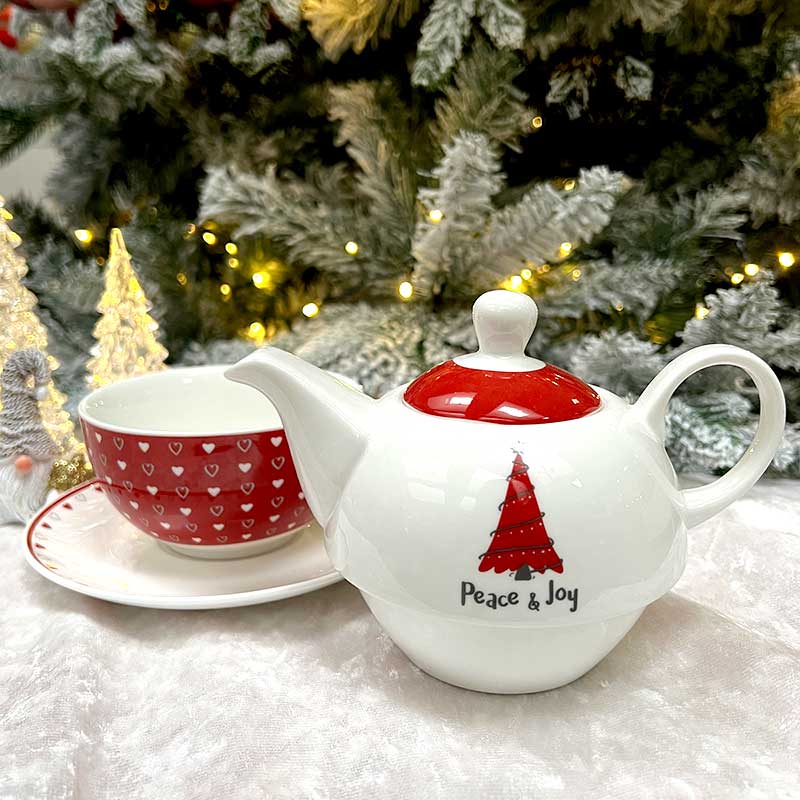 Unesite čaroliju blagdana u svoj dom uz porculanski čajnik sa šalicom i tanjurićem "Peace & Joy".