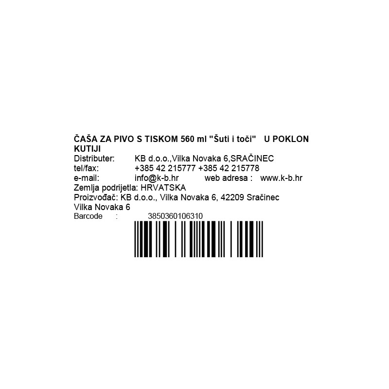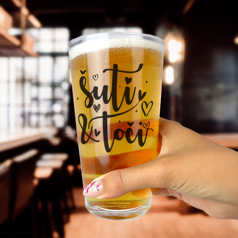 • Duhovitost: Natpis "Šuti i toči" dodaje humorističan element čaši, što može razveseliti primatelja poklona i dodati zabavnu notu uživanju u pivu.