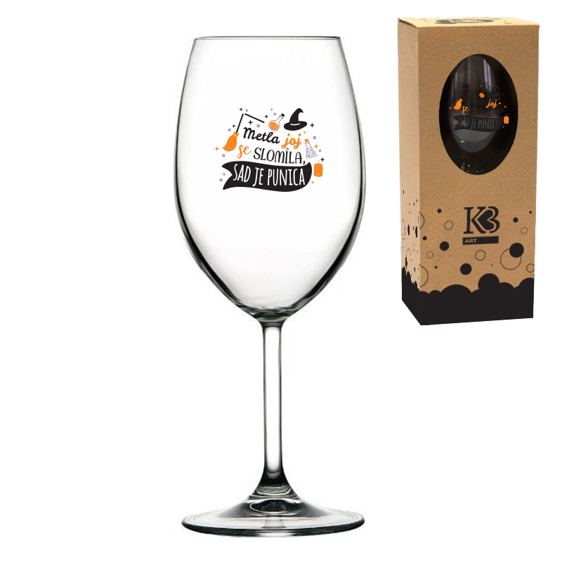 ČAŠA ZA VINO S TISKOM "Metla joj se slomila sad je punica"360ml U POKLON KUTIJI