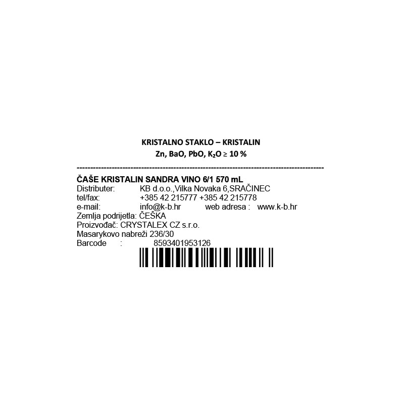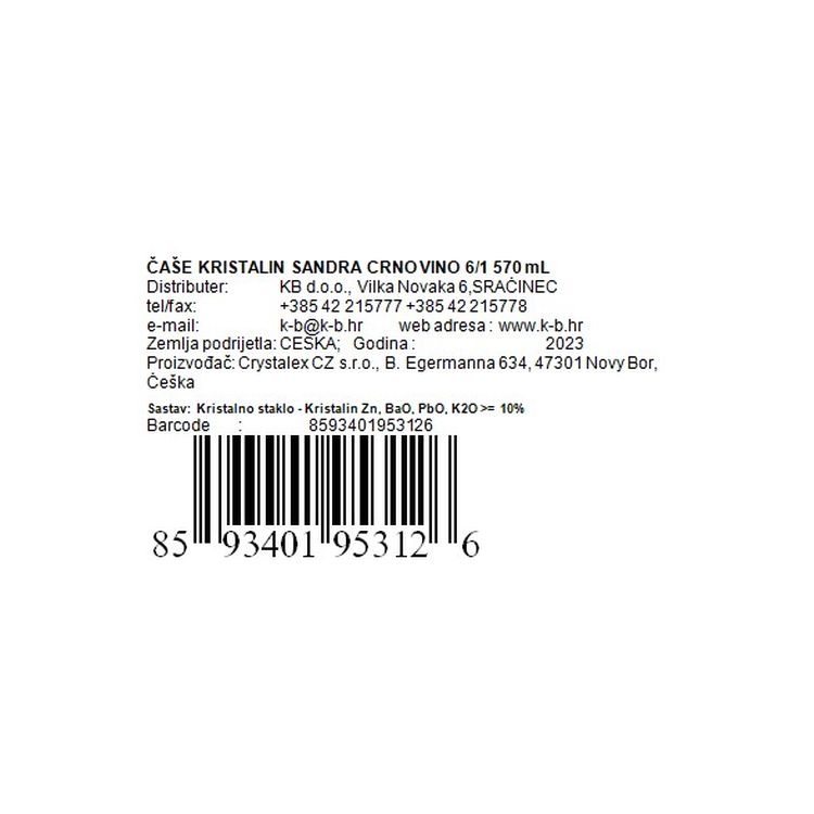 ČAŠE ZA CRNO VINO KRISTALIN SANDRA 6/1 570 mL