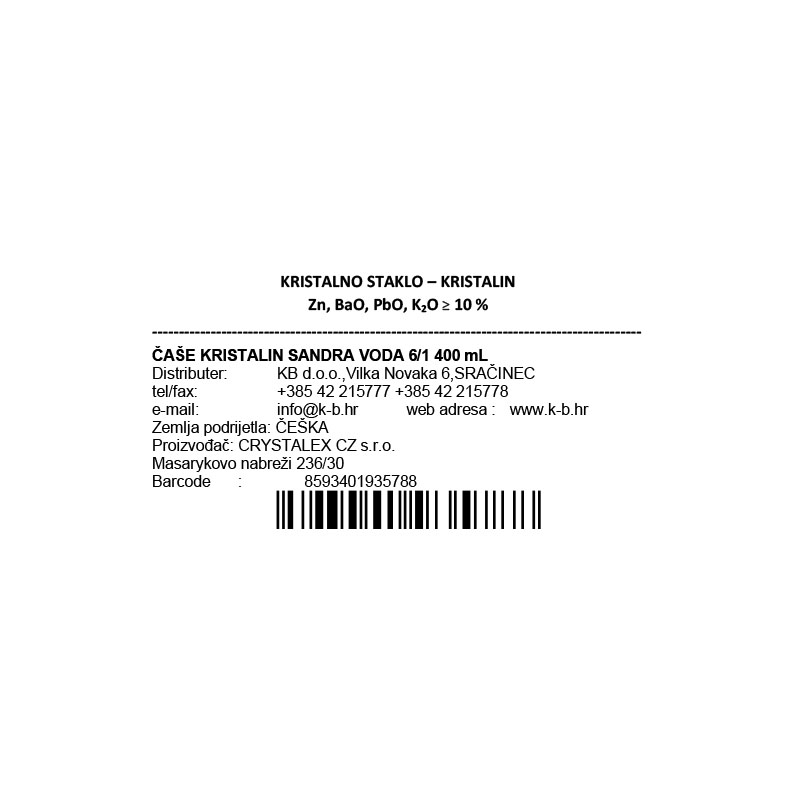 KRISTALNE ČAŠE ZA VODU SANDRA 6/1 400 mL
