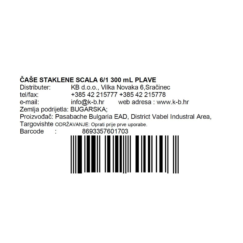 ČAŠE STAKLENE SCALA 6/1 300 mL PLAVE