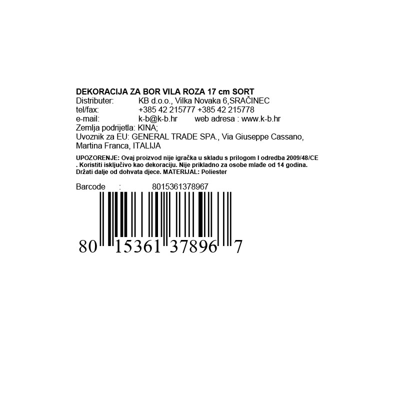 • Visina: 17 cm – idealna veličina za svako božićno drvce.