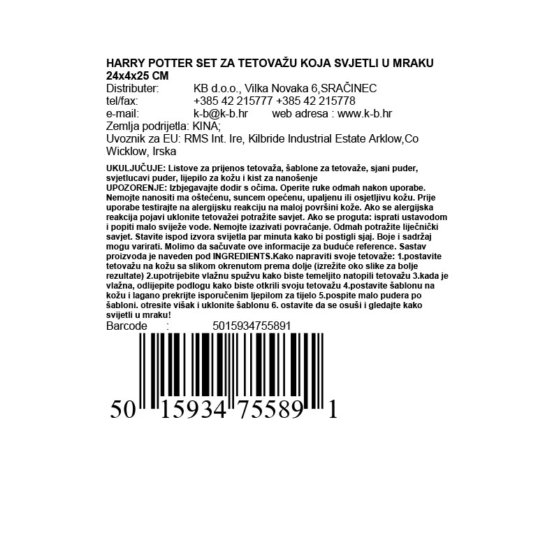 HARRY POTTER SET ZA TETOVAŽU KOJA SVJETLI U MRAKU