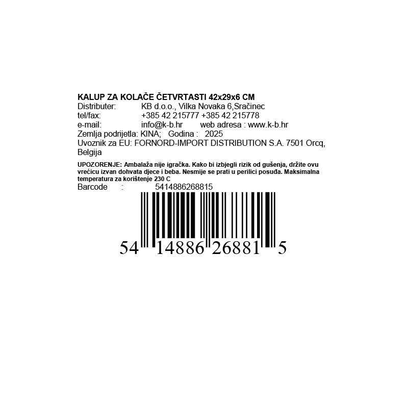 Ovaj izdržljivi kalup izrađen je od visokokvalitetnog materijala koji osigurava ravnomjerno pečenje i lakoću izvlačenja kolača. Njegove dimenzije pružaju dovoljno prostora za pečenje većih količina kolača, čineći ga savršenim za obiteljska okupljanja, proslave ili čak poslovne događaje.