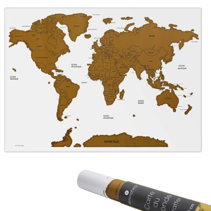 Karta svijeta na struganje dimenzija 82 x 59 cm predstavlja jedinstven i zabavan način praćenja putovanja.