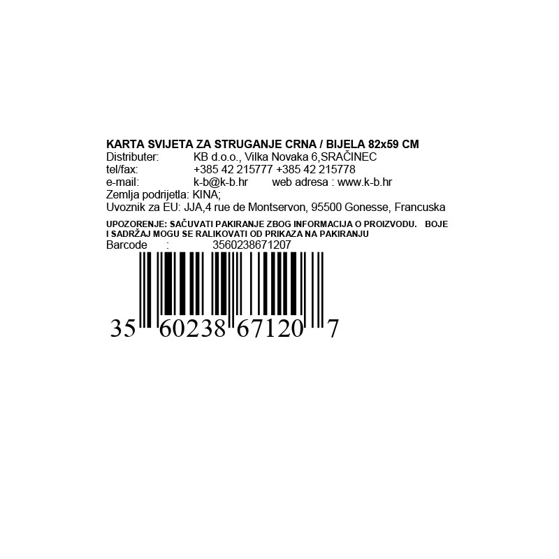 • Veličina: Dimenzije od 82 x 59 cm čine ovu kartu dovoljno velikom da bude istaknuta na zidu pružajući preglednu sliku svijeta.