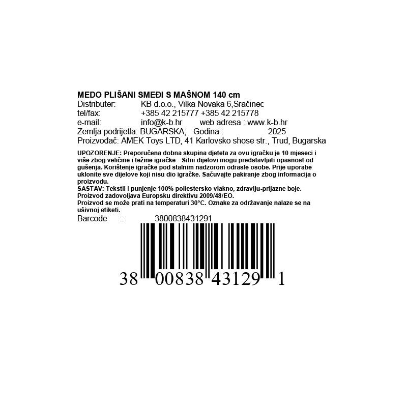 Veliki plišani medo visine 140 cm igračka je koja će oduševiti svakoga tko ga vidi! Ovaj divovski medo savršen je poklon za male, velike, pa i "još veće" mališane – ali i za odrasle.