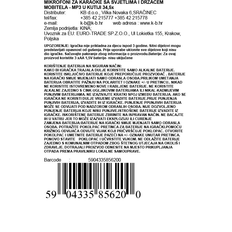 • mikrofon ima svjetlosne i zvučne efekte koji se aktiviraju tipkom,