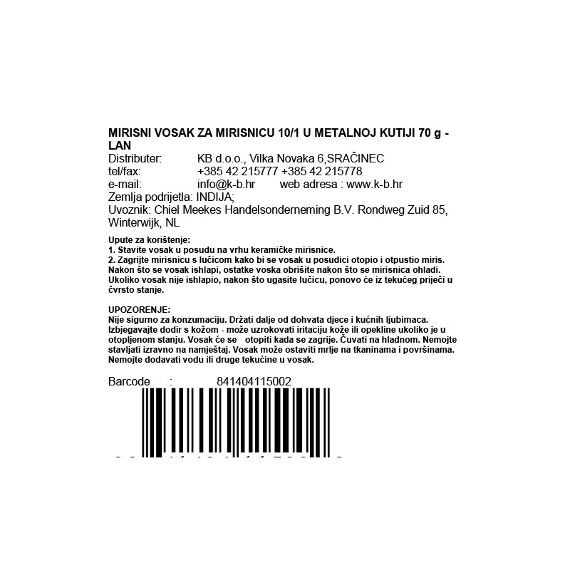 Koristiti naš mirisni vosak je jednostavno kao uživanje u najljepšim trenucima prirode. Ubacite jedan komad voska u svoju mirisnicu i upalite malu lučicu ispod. Polako se otapajući, miris lana širi se prostorom, donoseći mir i opuštanje u svaki kutak vašeg doma.