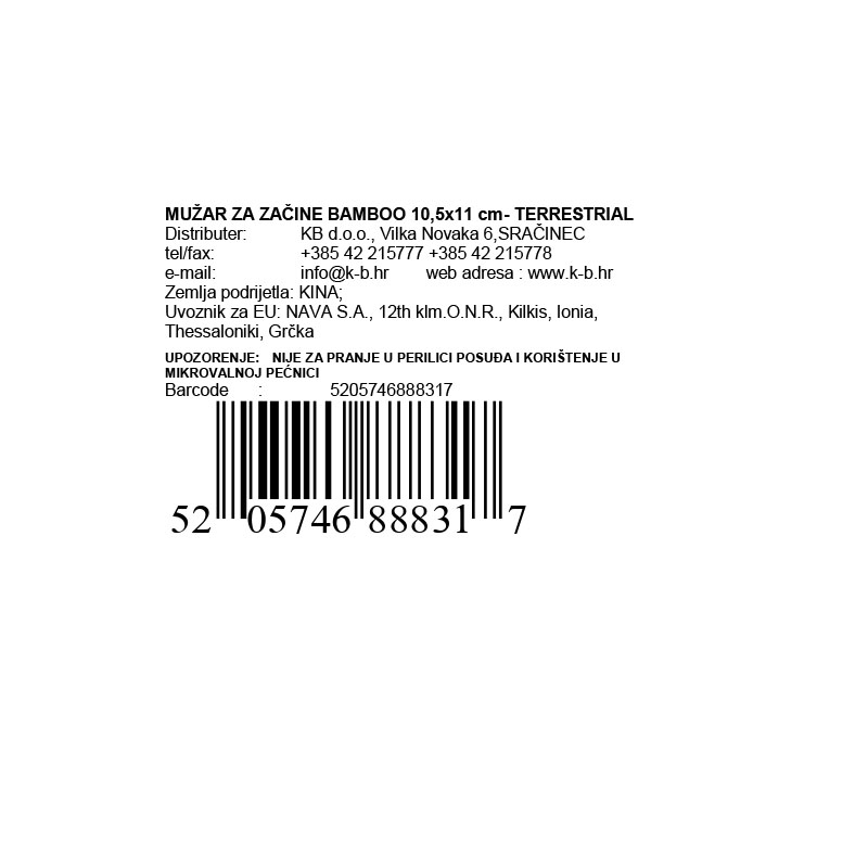 Mužar za začine Bamboo dimenzija 10,5 x 11 cm - Terrestrial predstavlja funkcionalan i elegantan dodatak vašoj kuhinji. Izrađen od kvalitetnog bambusa, ovaj mužar pruža prirodan i rustikalan izgled koji će se lijepo uklopiti u bilo koji kuhinjski ambijent.