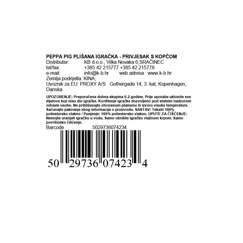 PEPPA PIG PLIŠANA IGRAČKA - PRIVJESAK S KOPČOM 21 cm