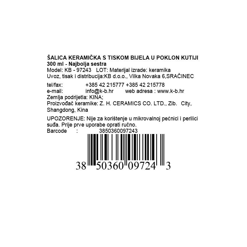 ŠALICA KERAMIČKA S TISKOM BIJELA 300 ml - Najbolja sestra