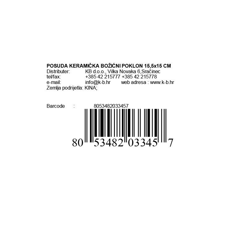 POSUDA KERAMIČKA BOŽIĆNI POKLON 15,5x15 CM