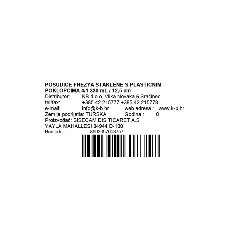 POSUDICE FREZYA STAKLENE S PLASTIČNIM POKLOPCIMA 4/1 330 mL / 12,5 cm