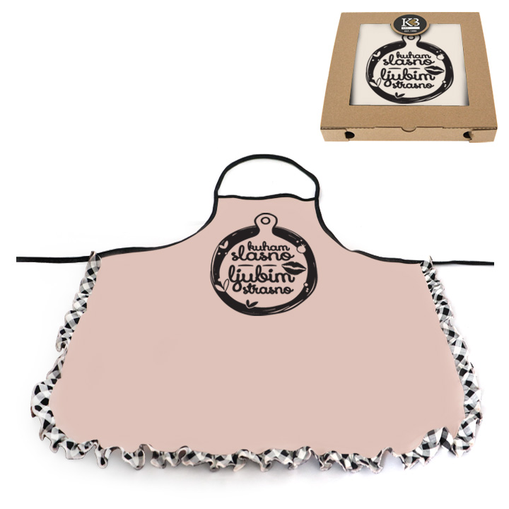 Razveselite zavodnice pregačom s natpisom " Kuham slasno, ljubim strasno.