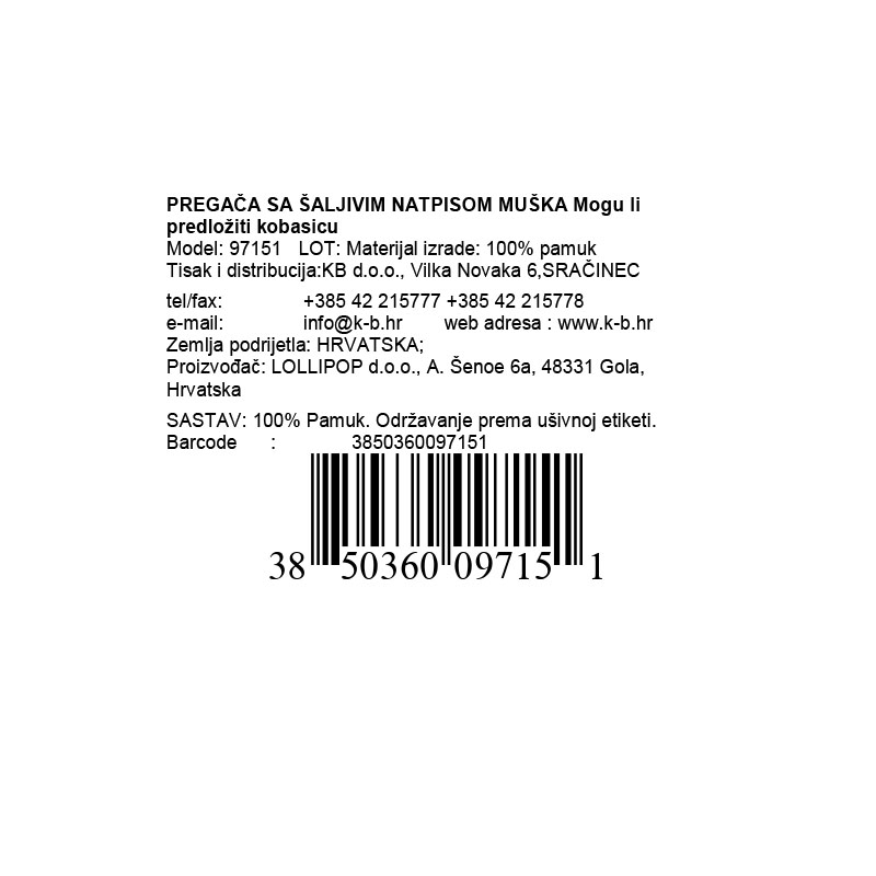 PREGAČA SA ŠALJIVIM NATPISOM MUŠKA Mogu li predložiti kobasicu