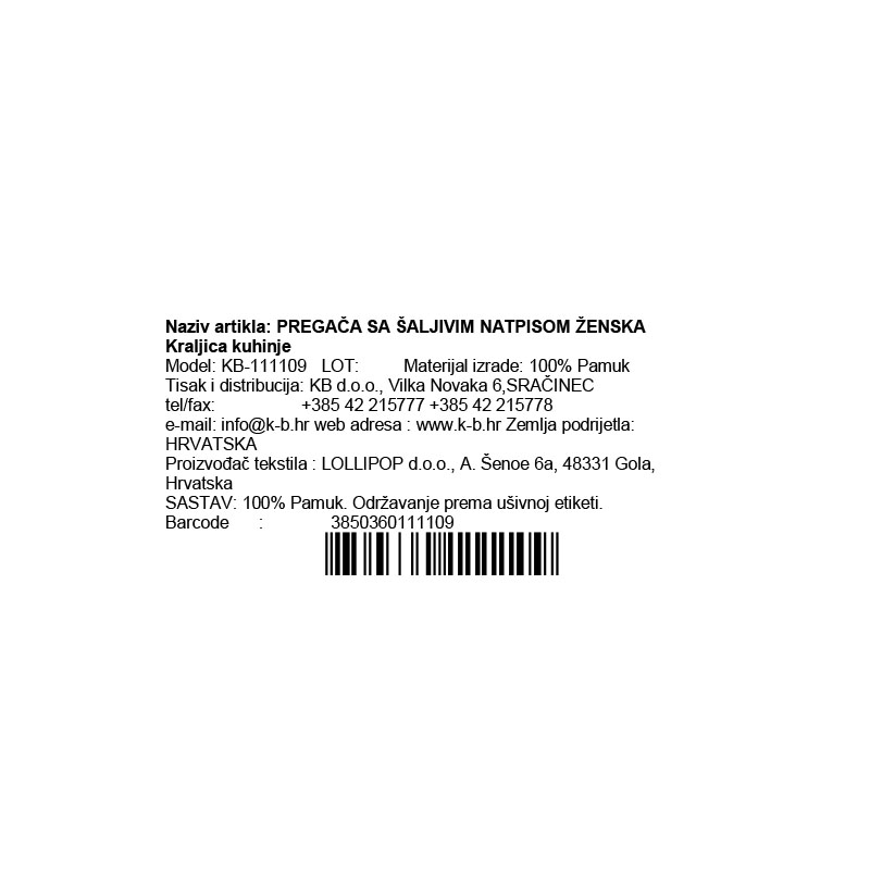 PREGAČA SA ŠALJIVIM NATPISOM ŽENSKA Kraljica kuhinje