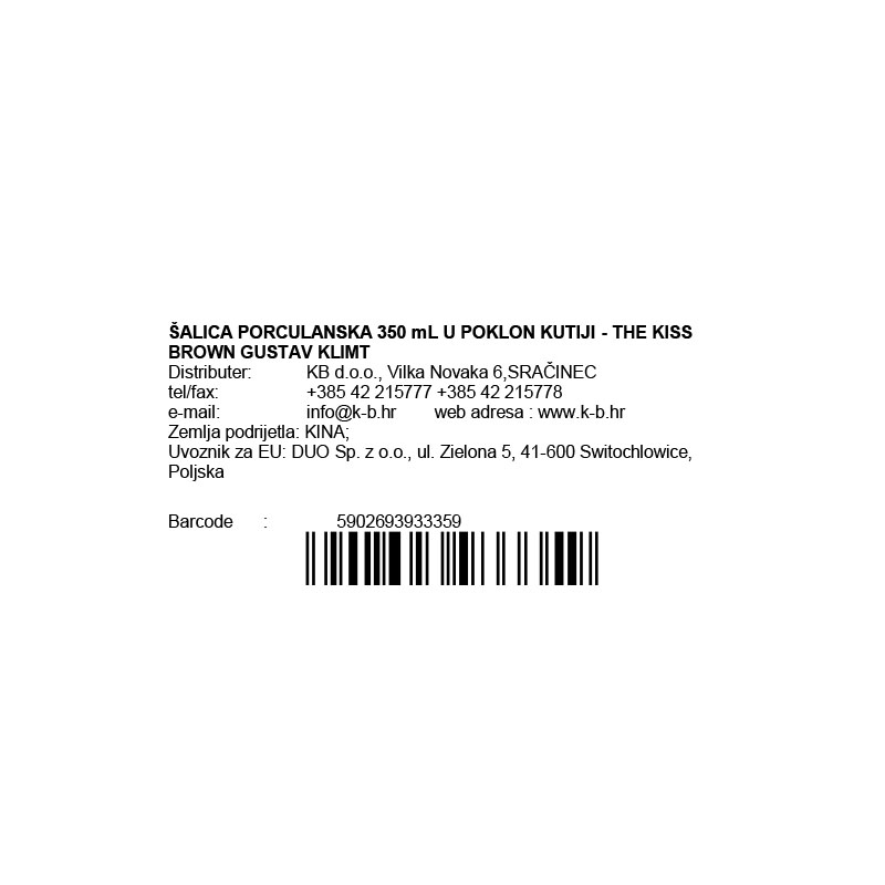 ŠALICA PORCULANSKA 350 ML - THE KISS BY BROWN GUSTAV KLIMT