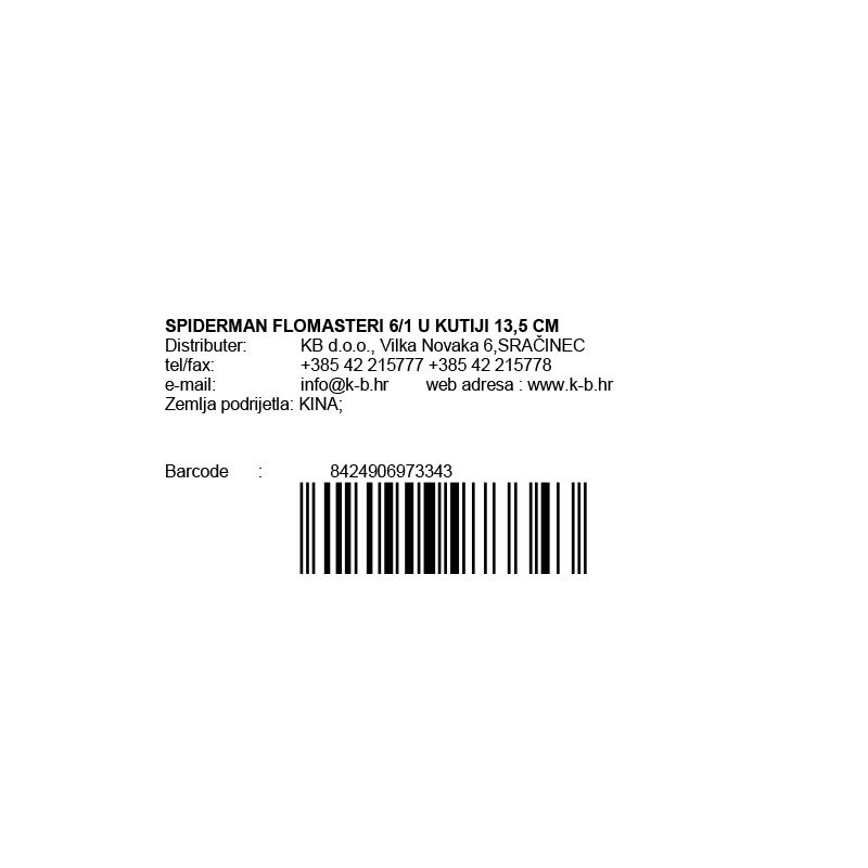 SPIDERMAN FLOMASTERI 6/1 U KUTIJI 13,5 CM