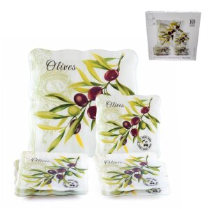 STAKLENI DEKORATIVNI 7 DIJELNI SET TANJURA OLIVE HARMONY 30,5 / 18 cm