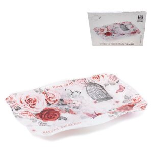 Radi se o elegantnom dekorativnom tanjuru izrađenom od kvalitetnog stakla. Četvrtasti oblik daje moderan karakter, dok valoviti rub unosi mekoću i profinjenost, pa se ističe kao ukrasni detalj u svakom prostoru.