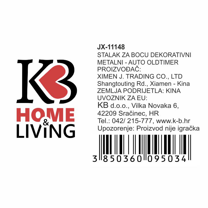 Stalak za butelju metalni s motivom oldtimera je dekorativni komad namijenjen držanju jedne butelje vina.