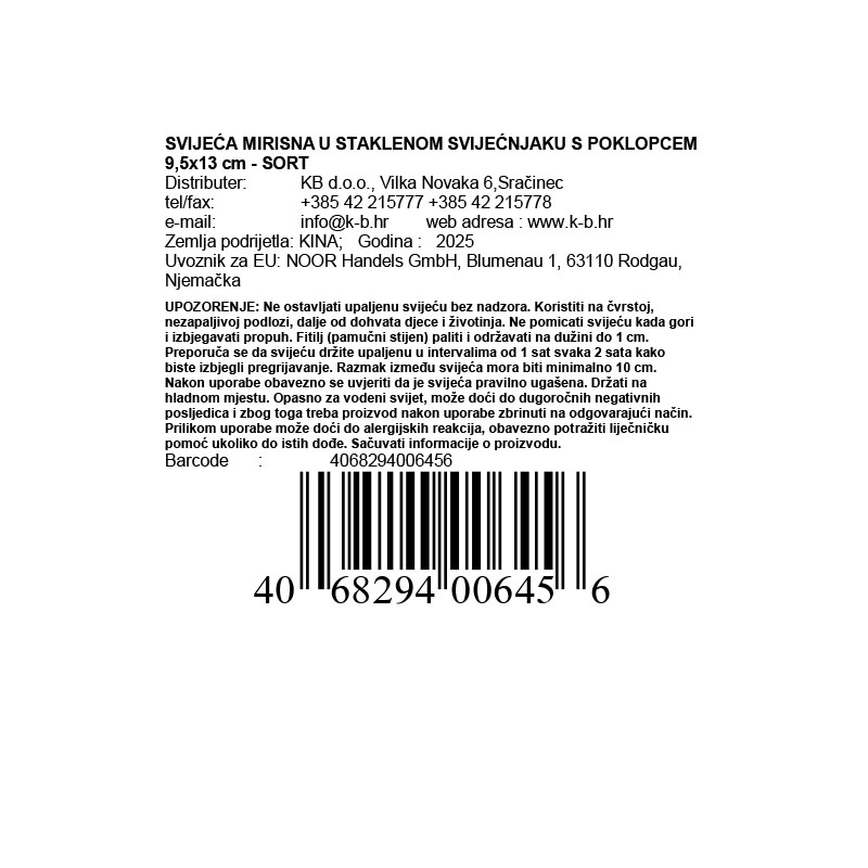 Artikl sadrži 1x mirisnu svijeću u staklenki.