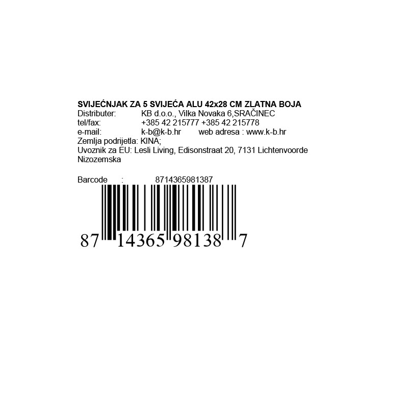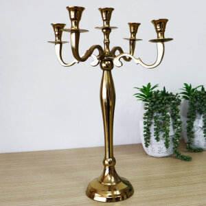 • Svijećnjak zlatne boje za pet svijeća.