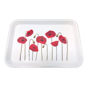 Velika dekorativna tacna dimenzija 38,8x27 cm s upečatljivim motivom crvenih makova savršena je za posluživanje hrane, pića i kolača u svakoj prilici.