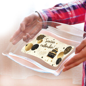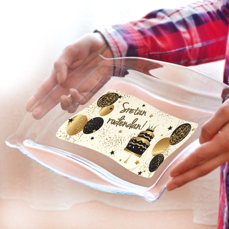 Posebnost tacne je tiskani natpis "Sretan rođendan" koji dodaje poseban šarm svakoj proslavi rođendana. Tacna dolazi u lijepom poklon pakiranju, što je čini idealnim poklonom za drage osobe.