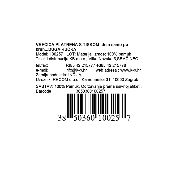 VREĆICA PLATNENA S TISKOM Idem samo po kruh...DUGA RUČKA 140g