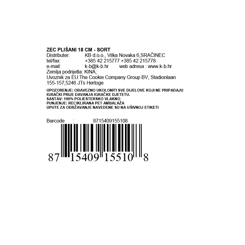 Naš plišani zec u bijeloj i smeđoj boji je prava poslastica za ljubitelje plišanih igračaka. Nećete moći odoljeti mekoći ovog zeca.