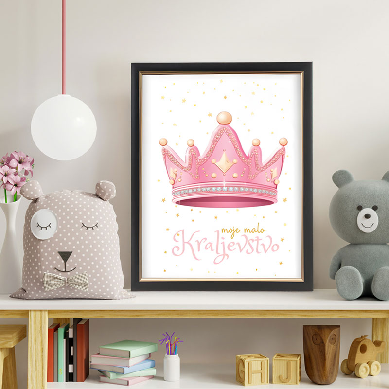Roza slika za dječju sobu s natpisom "Moje malo kraljestvo".